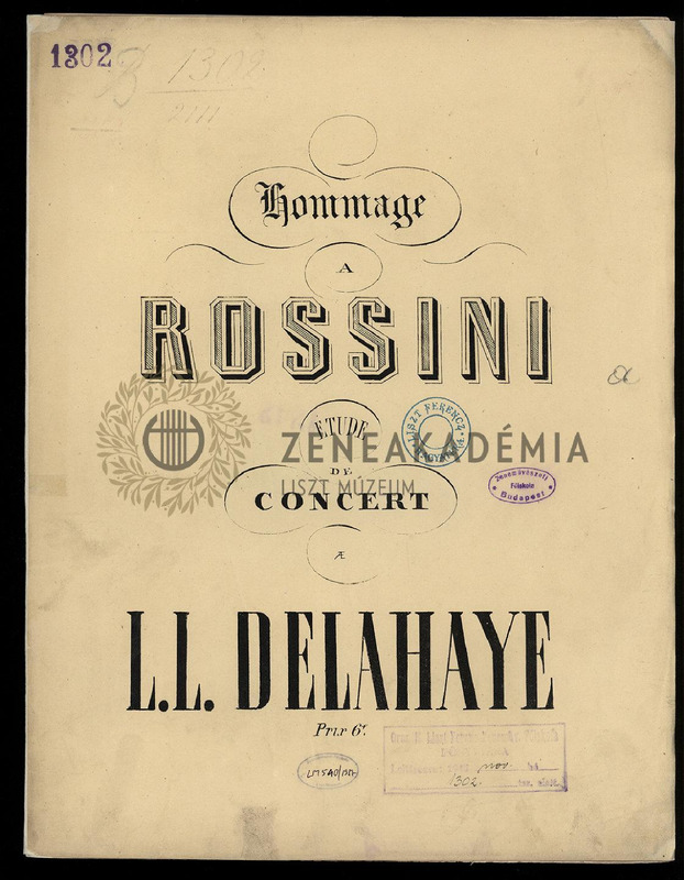 Lisztnek szóló kézírásos ajánlással: "? Franz Liszt/ témoignage de profonde / gratitude et de respectueuse / admiration. / L. L. Delahaye." A címlapon Rossini arcképével: Aug. Lemoine litográfiájával, Numa Blanc fotója alapján.