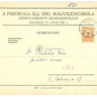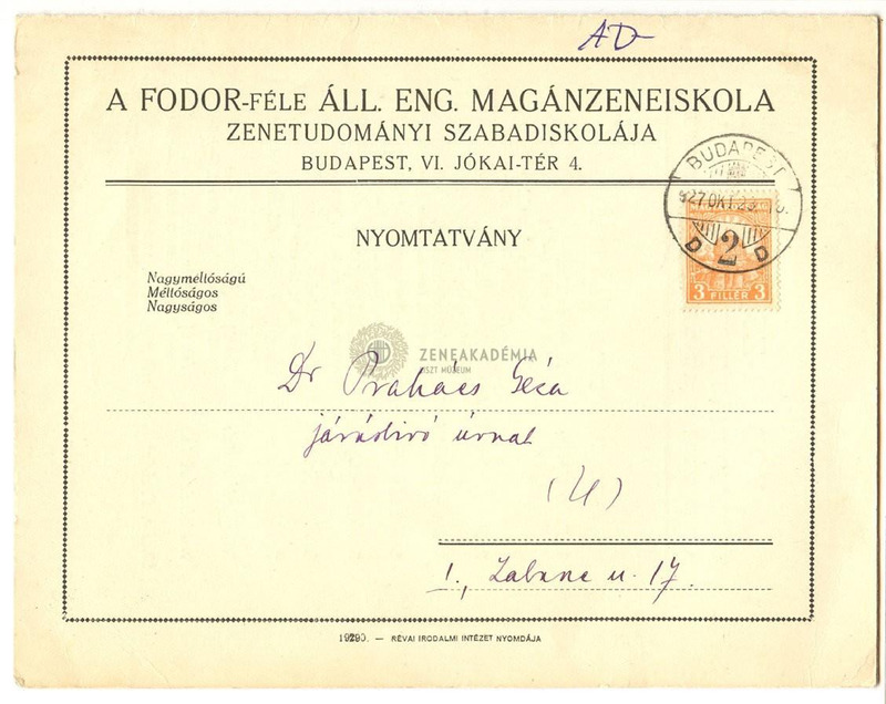 - Nyomtatvány dr.Prahács Géza járásbírónak a Fodor-Zeneiskola zenetudományi szabad iskolájának programjáról, az első ciklus előadásainak és tandíjának részletes ismertetésével.Keltezés nincs.