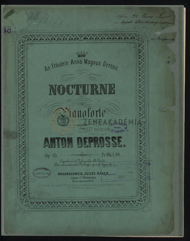 A szerző nyomtatott előszavával: Berlin, 1875. dec. 4. A szerző Lisztnek szóló kézírásos ajánlásával: "Herrn Dr. Franz Liszt, / in tiefster Ehrerbietung zugeeignet / vom Componisten".