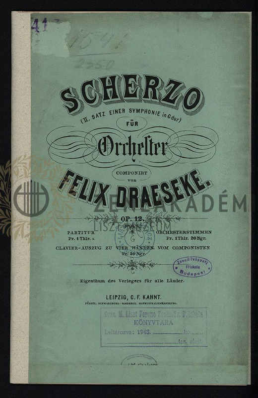 Scherzo (<<II=2>>. Satz einer Symphonie in G dur), für Orchester. Op. 12. Partitur.