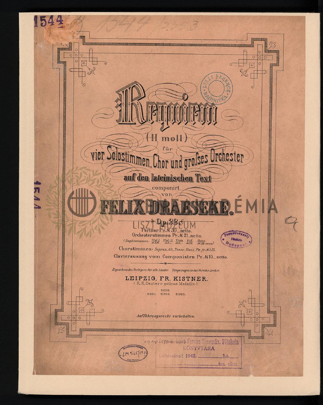 Requiem (H moll), für vier Solostimmen, Chor und grosses Orchester auf den lateinischen Text. Op. 22. Partitur.