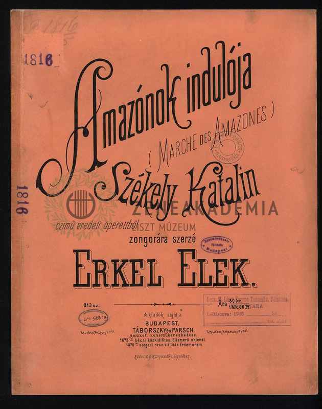 Amazónok indulója. Székely Katalin czimű eredeti operettből zongorára.