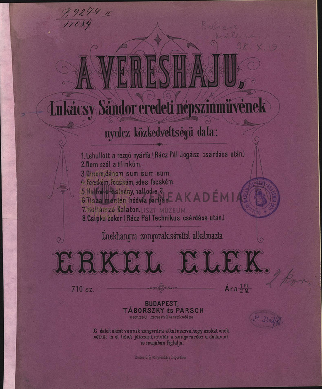 A vereshajú. Lukácsy Sándor népszínművének összes kedvelt dalai énekhangra zongorakísérettel.