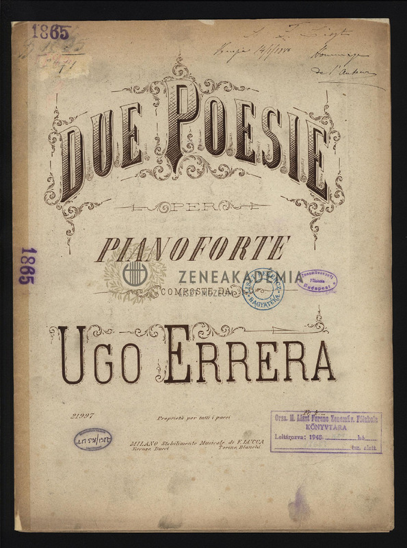 Lisztnek szóló kézírásos ajánlás a címlapon: "? F. Liszt / Venezia 14/1/1880/ Hommage/ de lAuteur".