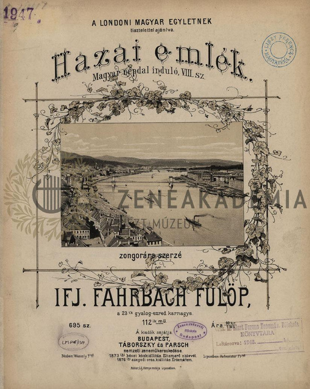 Hazai emlék, 112ik mű; magyar népdal induló, VIII. sz. zongorára.