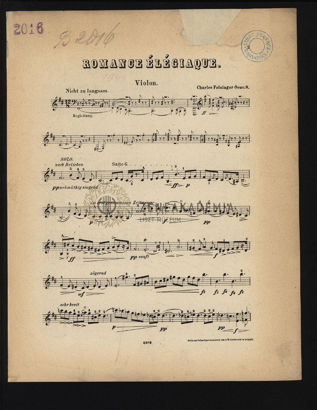 Romance élégiaque pour Violon et Pianoforte. Oeuvre 8.