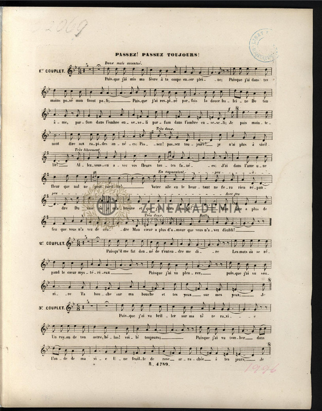 Passez! Passez toujours! Mélodie pour Mezzo Soprano ou Baryton.