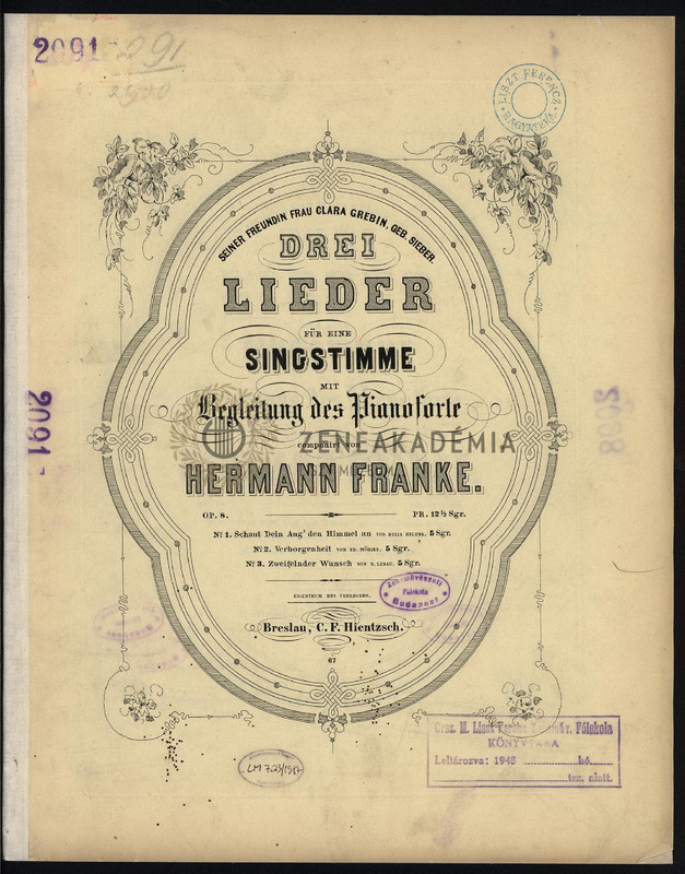 No. 1. Schaut Dein Aug den Himmel an von Dilia Helena; No. 2. Verborgenheit von Ed. Mörike; No. 3. Zweifelnder Wunsch von N. Lenau.