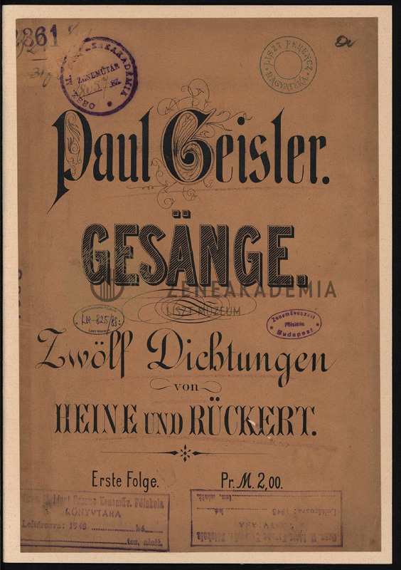 "Du bist wie eine Blume" (Heine) "Sie haben heut Abend Gesellschaft" (Heine); "Die Lotosblume" (Heine); "Ein Fichtenbaum steht einsam" (Heine); "Der Tod, das ist die kühle Nacht" (Heine); "Es blasen die blauen Husaren" (Heine); "Lehn deine Wang an meine Wang" (Heine);"Es erklingen alle Bäume" (Heine); "Der Himmel hat eine Thräne geweint" (Rueckert); "Das Meer hat seine Perlen" (Heine); "Childe Harold" (Heine). 2 példány. Az LH Z 2199 számon kolligátum.