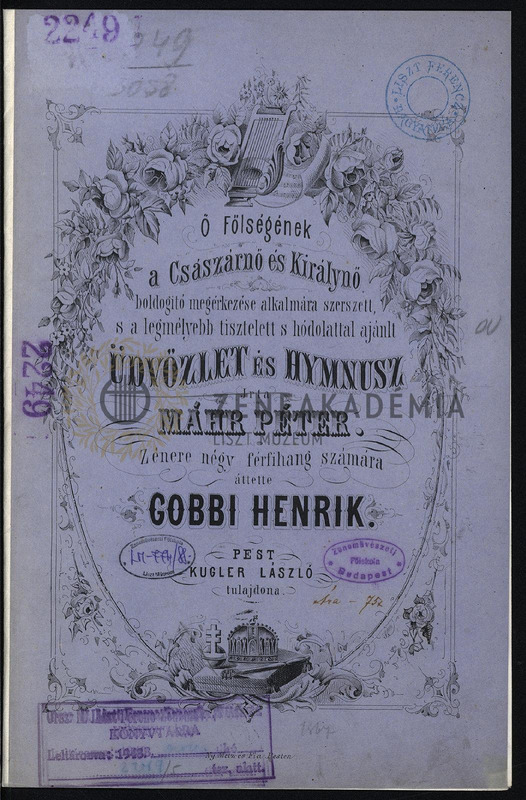 Üdvözlet és hymnusz írta Máhr Péter. Zenére négy férfihang számára áttette Gobbi Henrik.