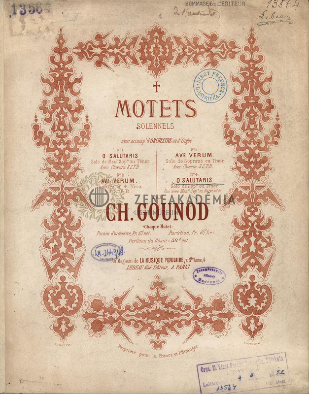 Motets Solennels avec accompt. dOrchestre ou dOrgue. No.4. O salutaris. Solo de Sop° ou Tenor, Duo avec Mez° Sop° ou Baryt. ad lib. (et accompt. dOrgue, Harpe, Cors, Violoncelle et Contre Basse).