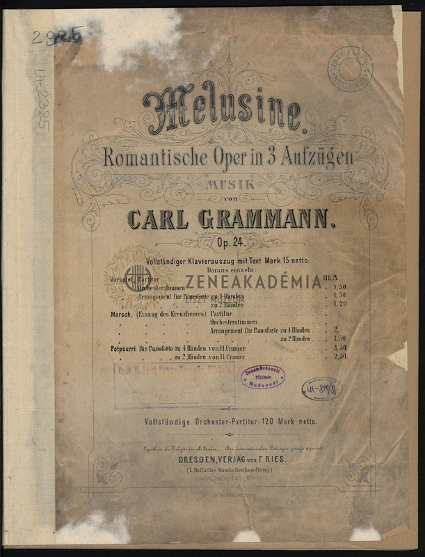 - Melusine. Romantische Oper in 3 Aufzügen - Vorspiel. Partitur. Op. 24.