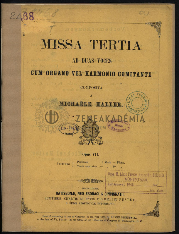 Missa tertia ad duas voces cum organo vel harmonio comitante. Op. VII. Partitura.