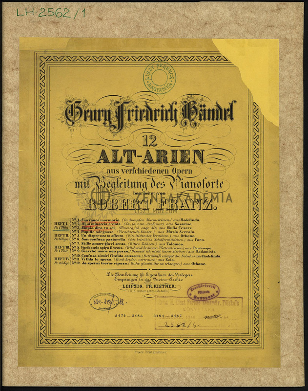 12 Alt-Arien aus verschiedenen Opern mit Begleitung des Pianoforte. Heft I.