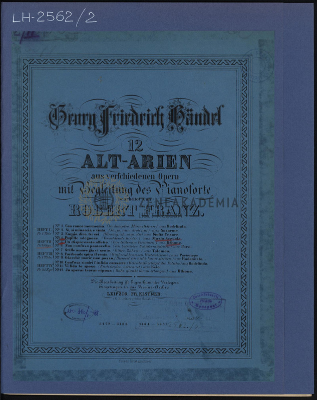 12 Alt-Arien aus verschiedenen Opern mit Begleitung des Pianoforte. Heft II.