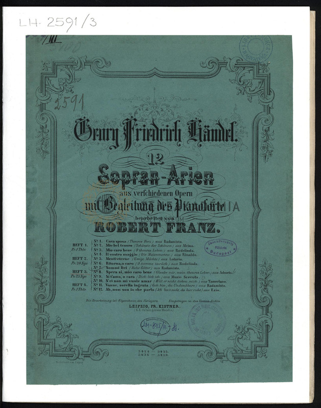 No. 7. Sommi Dei /Höhe Götter/ aus Radamisto. 8. Spera, s?, mio caro bene /Glaube mir, mein theures Leben/ aus Admeto. 9. S?, tamo, o cara /Dich lieb ich/ aus Muzio Scevola.