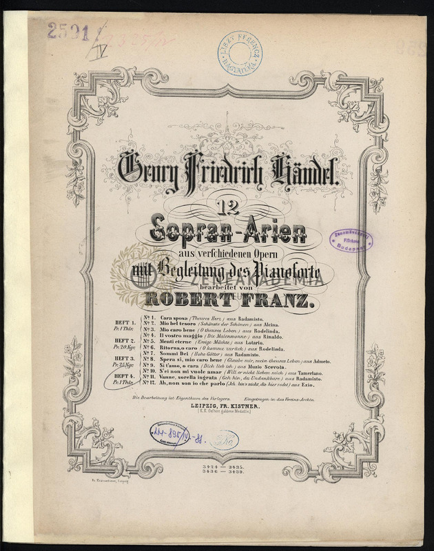 12 Sopran-Arien aus verschiedenen Opern mit Begleitung des Pianoforte. Heft IV.