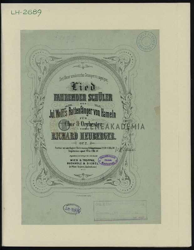 Lied fahrender Schüler aus Jul. Wolffs Rattenfänger von Hameln für Chor & Orchester. Op. 2. Partitur mit unterlegtem Clavierauszug & Singstimmen.