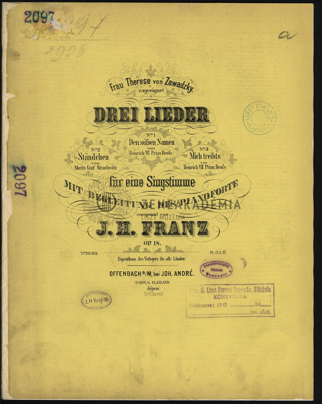 No. 1. Den süssen Namen von Heinrich VII Prince Reuss; No. 2. Ständchen von Moritz Graf Strachwitz; No. 3. Mich treibts von Heinrich VII Prince Reuss.