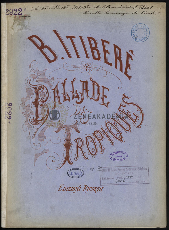 Lisztnek szóló kéziratos ajánlással: "Au tr?s illustre Maître Mr. le Commandeur F. Liszt/ Humble hommage de lauteur".