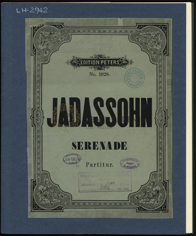Lisztnek szóló kéziratos ajánlással: "Franz Liszt/ in grösster Verehrung /zugeeignet /von/ Jadassohn".