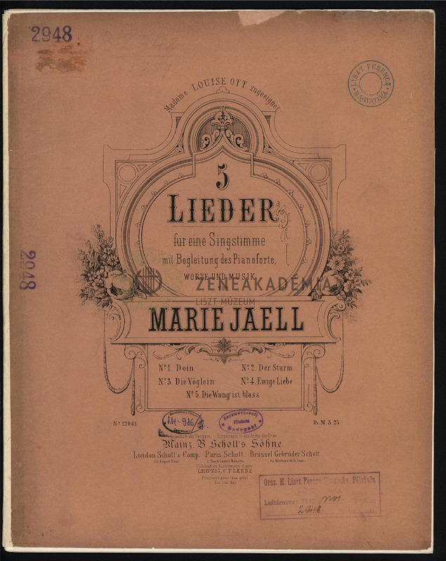 1. Dein; 2. Der Sturm; 3. Die Vöglein; 4. Ewige Liebe; 5. Die Wang ist blass.