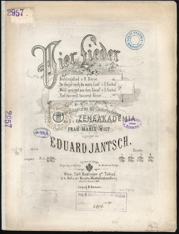Vier Lieder für eine Singstimme mit Clavierbegleitung.