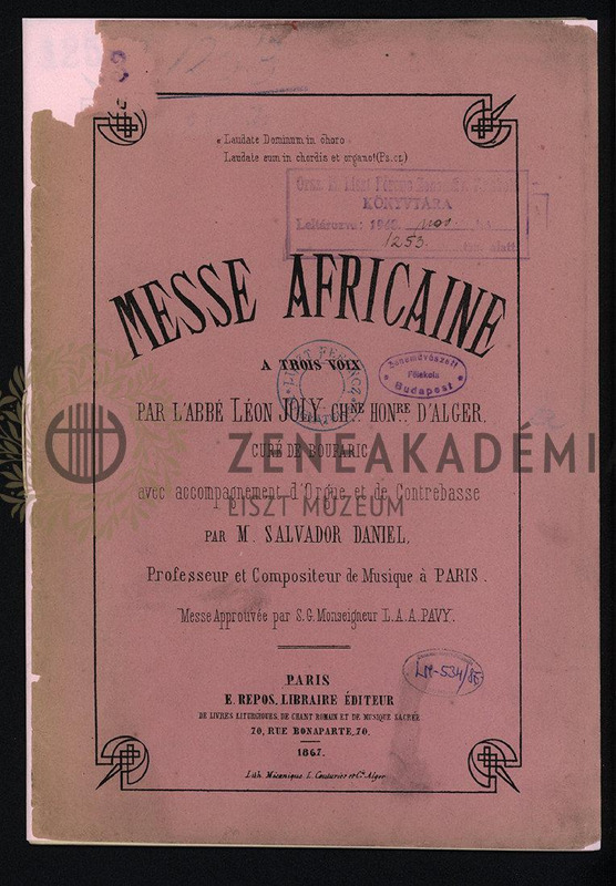 Messe africaine ? trois voix avec accompagnement dOrgue et de Contrebasse.