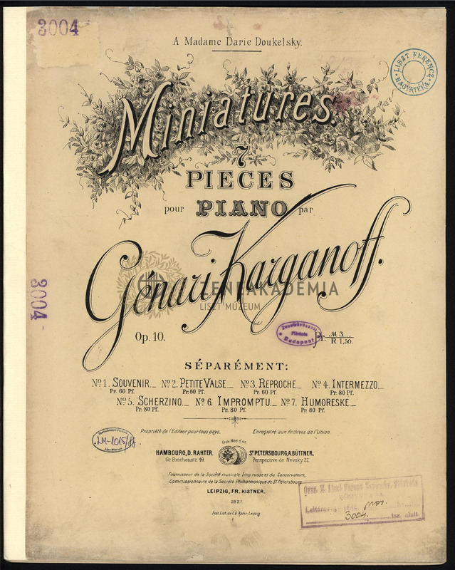 No. 1. Souvenir. No. 2. Petite Valse. No. 3. Reproche. No. 4. Intermezzo. No. 5. Scherzino. No. 6. Impromptu. No. 7. Humoreske.