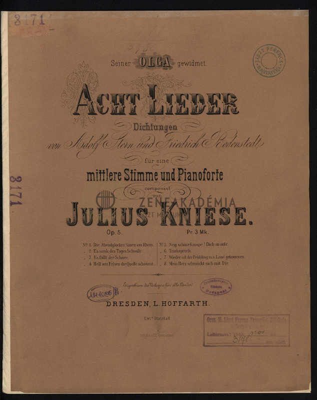 Acht Lieder für ene mittlere Stimme und Pianoforte. Op. 5.
