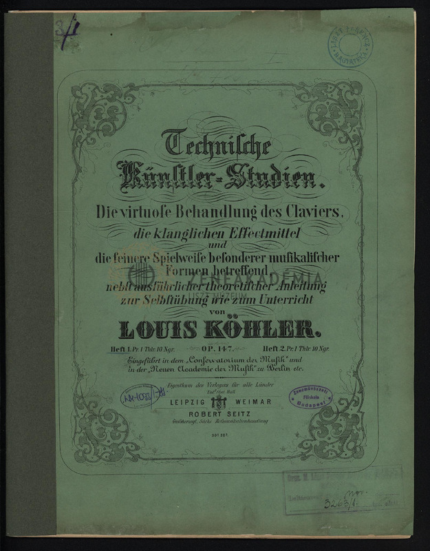 Technische Künstler-Studien, Op. 147. Die virtuose Behandlung des Caviers, die klanglichen Effectmittel und die feinere Spielweise besonderer musikalischer Formen betreffend, nebst ausführlicher theoretischer Anleitung zur Selbstübung wie zum Unterricht. Heft I-II.