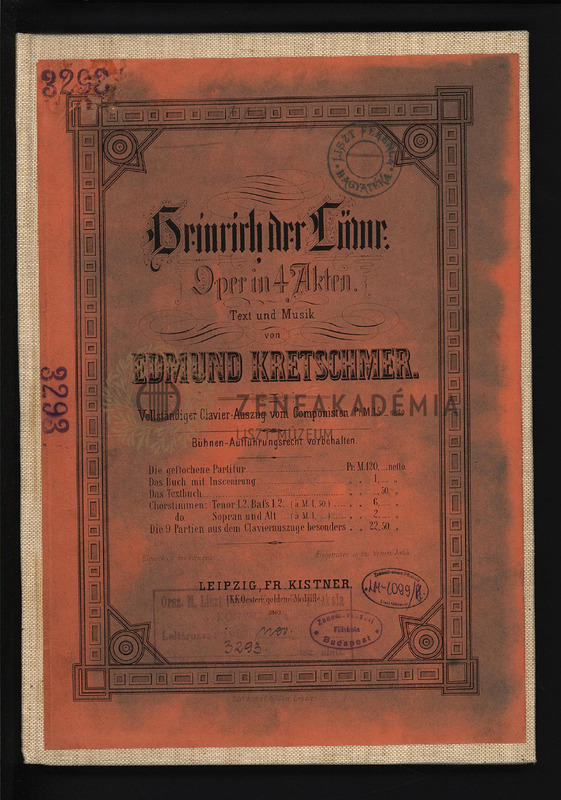 Heinrich der Löwe. Oper in 4 Akten. Vollständiger Clavier-Auszug.