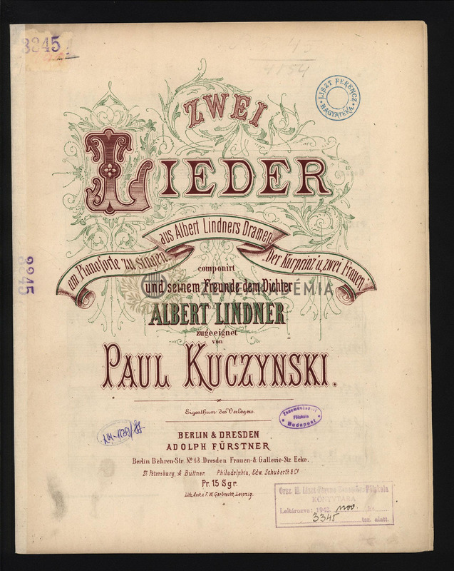 Zwei Lieder am Pianoforte zu singen. Aus Albert Lindners Dramen: "Der Kurprinz u. zwei Frauen [...].