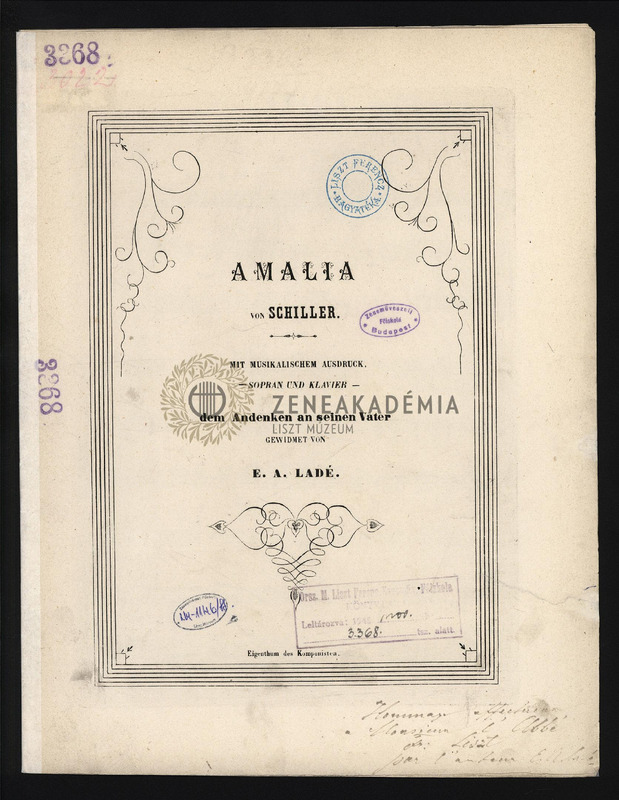 Lisztnek szóló kéziratos ajánlással: "Hommage affectueux/ ? Monsieur lAbbé / Fr. Liszt / par lauteur E. A. Ladé".