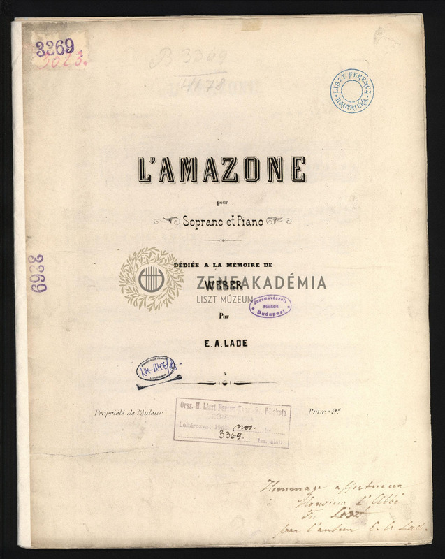 Lisztnek szóló kéziratos ajánlással: "Hommage affectueux /? Monsieur lAbbé / Fr. Liszt/ par lauteur E. A. Ladé".