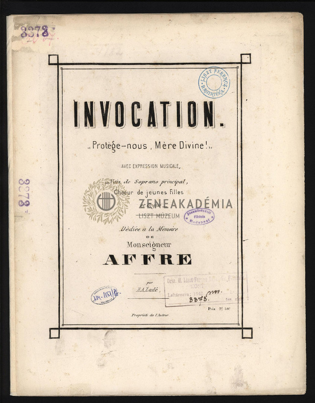 Invocation "Prot?ge-nous, M?re Divine!" Avec expression musicale, Voix de Soprano principal, Choeur de jeunes Filles et Orgue. Dédidée ? la Mémoire de Monseigneur Affre.