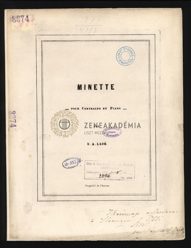 Lisztnek szóló kéziratos ajánlással: "Hommage affectueux /? Monsieur lAbbé/ Fr. Liszt /par lauteur E. A. Ladé".