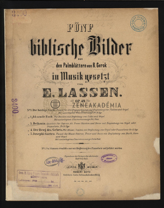 Fünf biblische Bilder aus Palmblättern von R. Gerok, Op. 49 - No.3. Bethania. Quintett für Sopran, Alt, Tenor, Bariton und Bass mit Begleitung von Orgel oder Pianoforte.