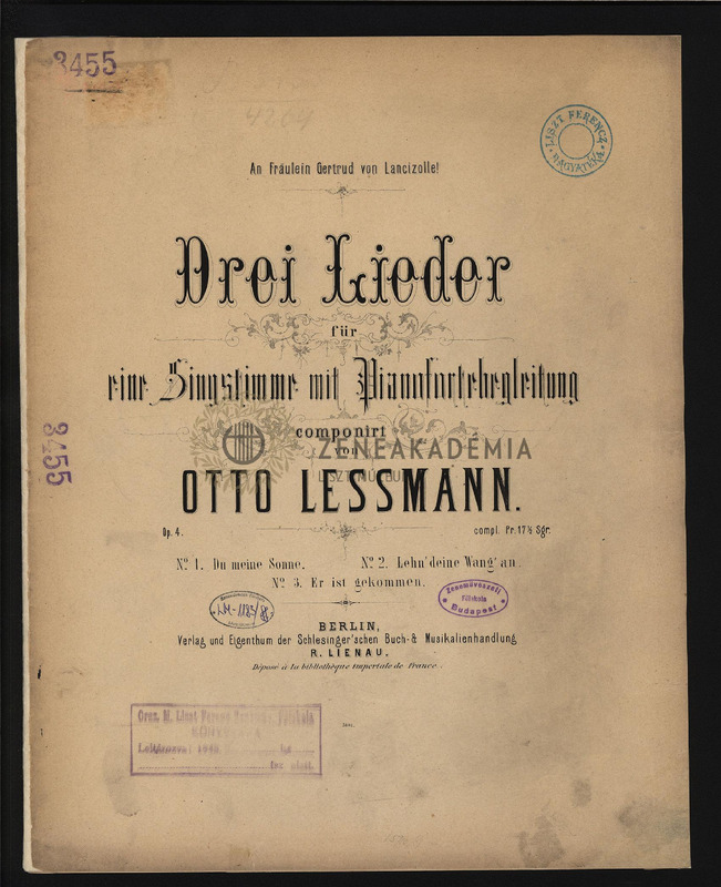 No. 1. Du meine Sonne; No.2. Lehn deine Wangan; No.3. Er ist gekommen.