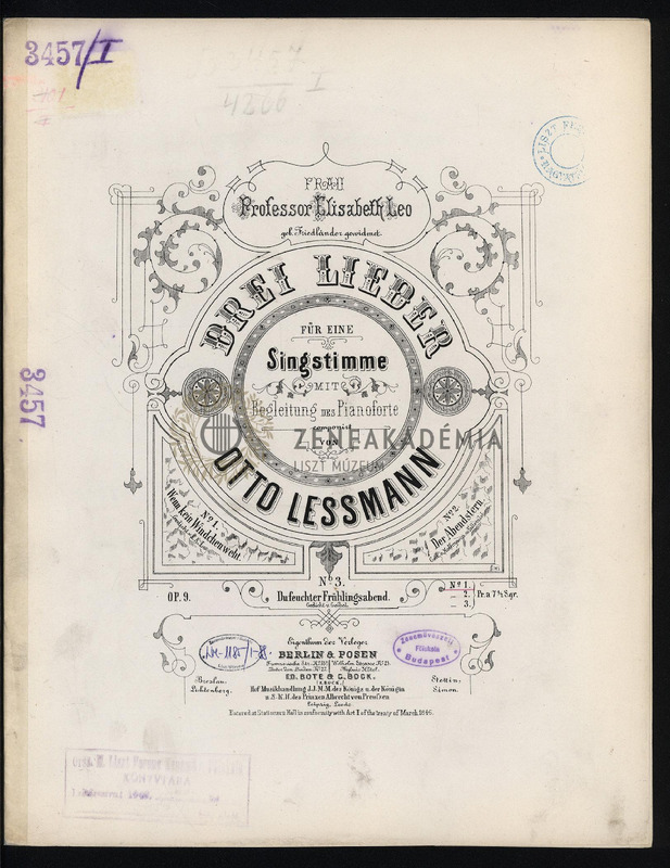 No. 1. Wenn kein Windchen weht. No. 2. Der Abendstern. No. 3. Du feuchter Frühlingsabend.