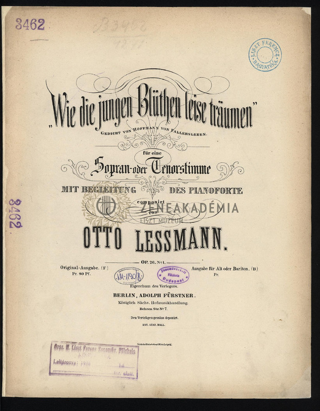 "Wie die jungen Blüthen leise träumen" für eine Sopran- oder Tenorstimme mit Begleitung des Pianoforte, Op. 26.
