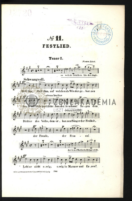 Für Männergesang - No.11. Festlied zu Schillers Jubelfeier, 10. Nov. 1859. Partitur und Stimmen.