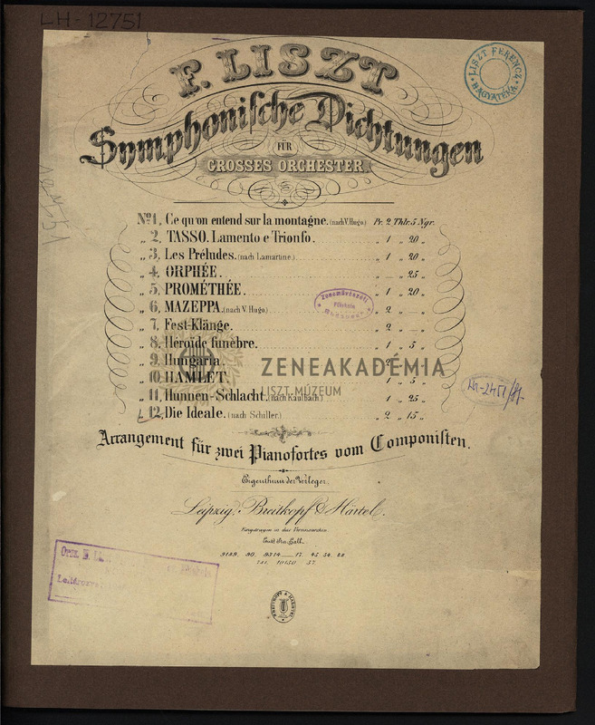 Symphonische Dichtungen für grosses Orchester -No.12. Die Ideale (nach Schiller). Arrangement für zwei Pianofortes vom Componisten.