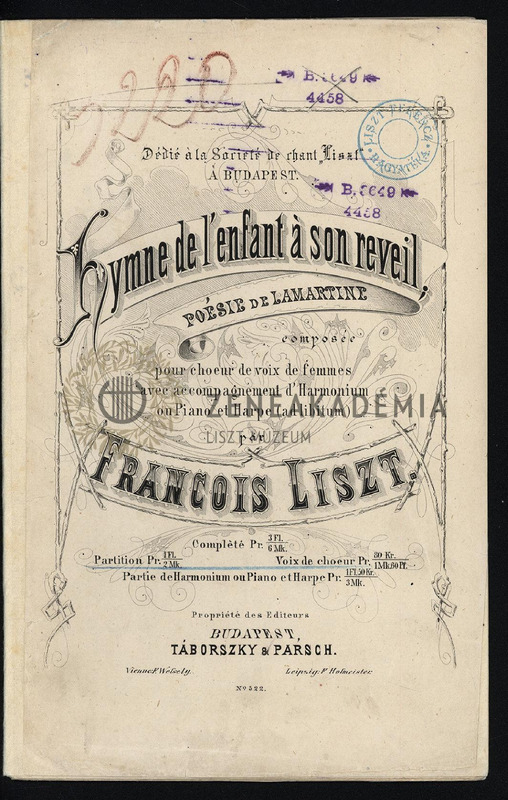 Hymne de lenfant ? son réveil [A gyermek dicséneke ébredéskor] composée pour choeur de voix de femmes avec accompagnement dharmonium ou piano et harpe (ad libitum).