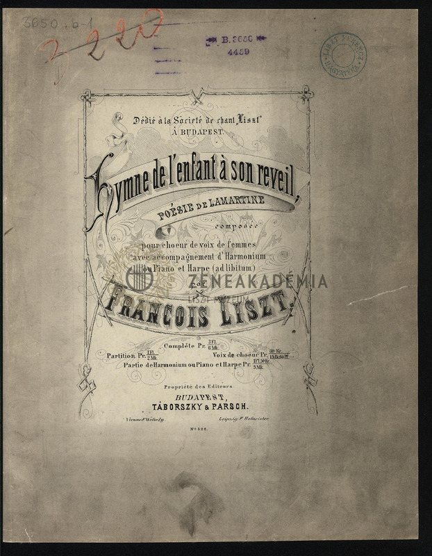 Hymne de lenfant ? son réveil composée pour choeur de voix de femmes avec accompagnement dharmonium ou piano et harpe (ad libitum). Partie de harmonium ou piano et harpe.