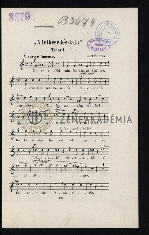 3 partitúra, eltérő jelzetekkel. Szólamok csak az LH Z 3679 jelzeten. Német nyelvű verziója: "Das Lied der Begeisterung."