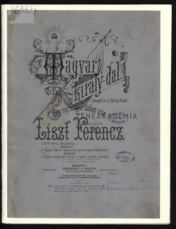 Magyar király-dal egy régi magyar dallam után vegyes-karra (sopran, alt, tenor és bass). Vezérkönyv.