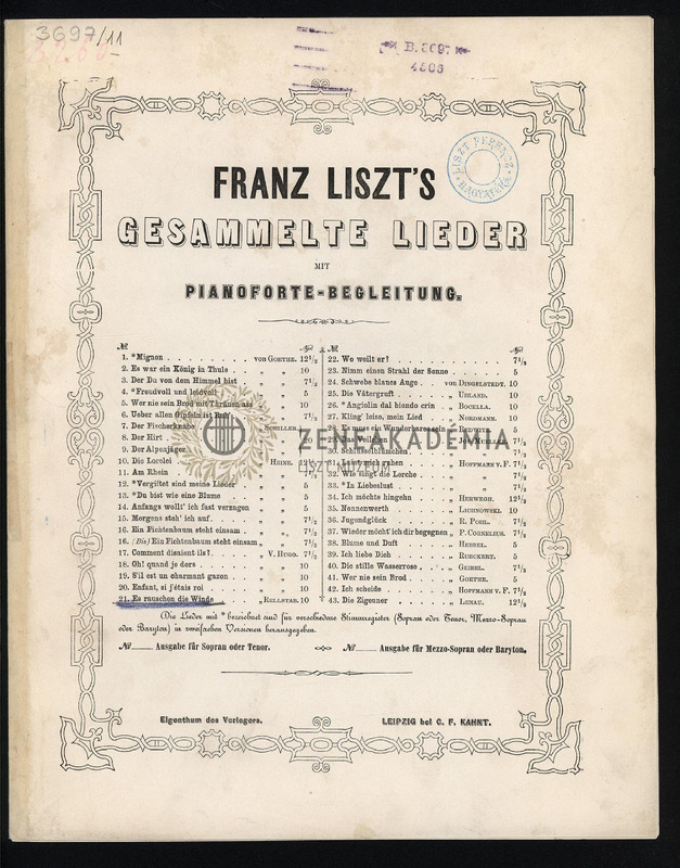 - Es rauschen die Winde (Tenor oder Mezzo-Sopran, Piano).