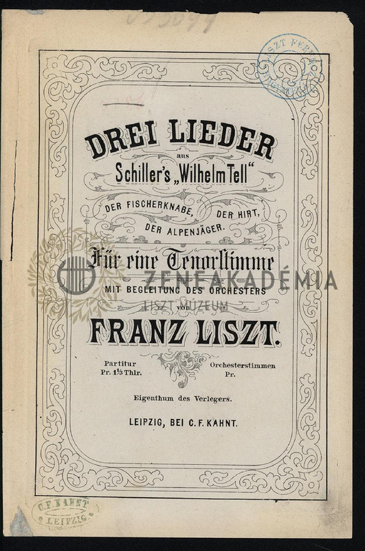 Drei Lieder aus Schillers "Wilhelm Tell", der Fischerknabe, der Hirt, der Alpenjäger für eine Tenorstimme mit Begleitung des Orchesters. Partitur.