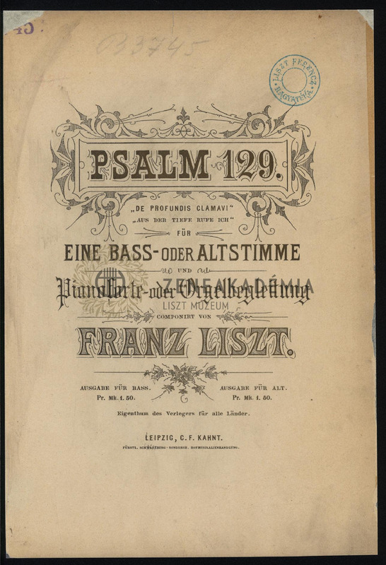 Psalm 129. "De profundis clamavi" (Aus der Tiefe rufe ich) für eine Bass- oder Altstimme und Pianoforte- oder Orgelbegleitung. Ausgabe für Bass.